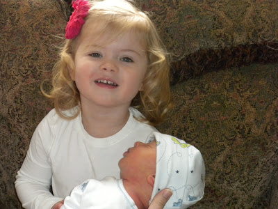 I really can't believe Mason is already one week old. I think that knowing that this is my last baby is making me want time to stqand still. I really want him to stay little forever. He is such a good baby. We are all just loving him to pieces. We cam home last Saturday and I was so ready! It was so great to get him home and finally introduce him to his anxious big brother and sister. They were sooooo excited to meet him. They are both great helpers and so interested in what he is doing all the time. Baylee absolutely loves to get me diapers, wipes, binkies, and help me drink water while I am nursing. Aidan loves to hold him and read to him. Barry is still on vacation so he has been able to be home with us and has been such a big help. The recovery from this c-section has been harder than the other two for some reason so I have really relied on him and he has been amazing! I really don't want him to go back to work. I also have to say thank you to my parents, and Barry's parents, along with my friends and neighbors who have brought meals and helped with the kids and so much more. I really am lucky to have such awesome support!